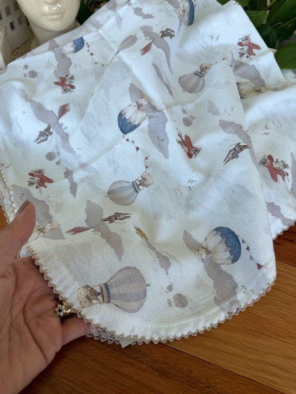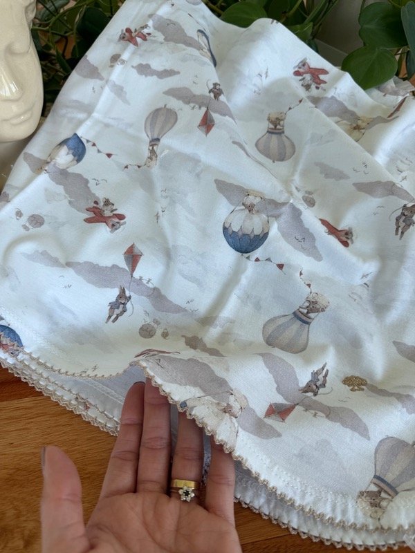 Manta de jersey cielo azul con picot y aplique de la marca!